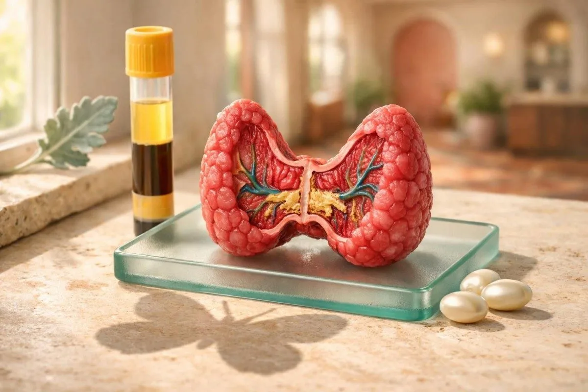 Biotin does not injure the thyroid at usual supplement doses; the problem is analytical, not toxic. The practical move is simple: do not change levothyroxine, methimazole, or iodine intake from one suspicious result until the panel is repeated under cleaner conditions.