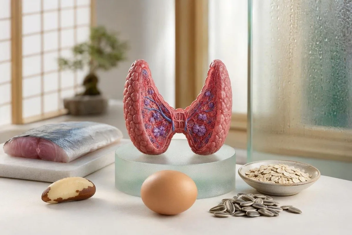 La tiroide conté més seleni per gram de teixit que molts òrgans perquè utilitza proteïnes que contenen seleni per gestionar l’activació hormonal i l’estrès oxidatiu. Un enfocament pràctic “primer els aliments” normalment aporta 55–100 µg/dia sense els pics que provenen de càpsules a dosis altes. Aquest rang és suficient per a molts adults, tret que la malabsorció, la diàlisi, el dejuni dietètic restrictiu o una exposició molt baixa a sòls rics en seleni canviïn l’equació.