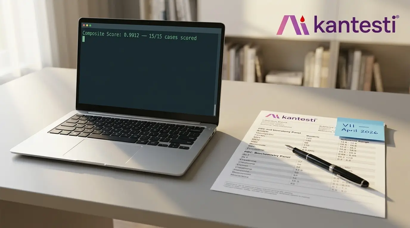 ការធ្វើតេស្តយោង (reference run) ប្រចាំខែមេសា ឆ្នាំ ២០២៦ របស់ Kantesti AI Engine V11 បានបង្កើតពិន្ទុរួម (composite score) នៃ 99.12% លើ rubric ករណី ១៥ ដែលបានចុះបញ្ជីជាមុន។ ករណីដែលជាប់អន្ទាក់ hyperdiagnosis ទាំងពីរបានពិន្ទុដល់កម្រិតកំពូល (ceiling)។ Mentzer index ត្រូវបានអនុវត្តត្រឹមត្រូវលើ differential រវាងការខ្វះជាតិដែក និង thalassaemia។.