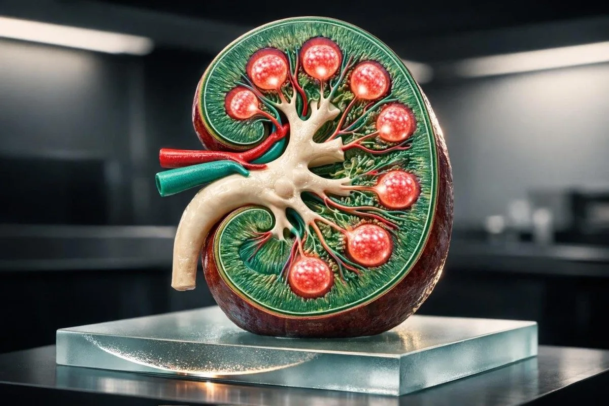 د پښتورګو د اناتومي واټرکلر انځور، چې د دوامدار ټیټ eGFR د مدیریت تشریح لپاره کارول شوی